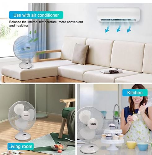 • Power: 50W • Voltage: 220V ~ 50Hz • Fan Size: 16 inch (3-blade) • Speed Settings: 3 levels • Oscillation: 90° horizontal swing • Colour: White |