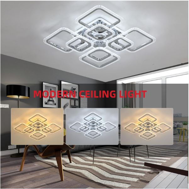 The modern 80W LED ceiling light offers both style and functionality with its striking square design and chrome finish. Perfect for living rooms, bedrooms, or kitchens, this dimmable ceiling lamp provides adjustable brightness and colour temperature for the ideal atmosphere in any space.