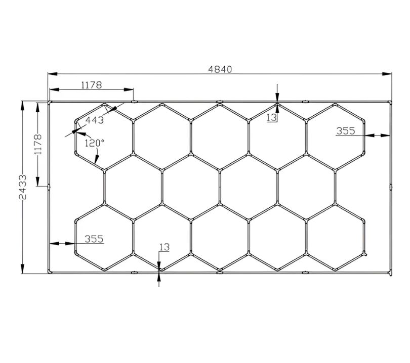 Elevate your interior lighting to a whole new level with our 600W designer light. This innovative lighting kit features a unique hexagonal design, no flicker, and a color temperature of 6500K for a daylight-like lighting experience. With 69 wide T5 tubes (440mm*23.6mm *38.1mm(57pcs)+1175mm*23.6mm *38.1mm(12pcs)), this kit offers a wider range of lighting, making it perfect for commercial spaces. Installation is a breeze, and you can even customize the shape to fit your preferences. Ideal for auto shops, mechanic garages, and more.