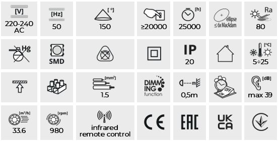 •. Luminous flux of the light fitting [lm]1032 (WW) / 2110 (NW) / 1154 (CW)