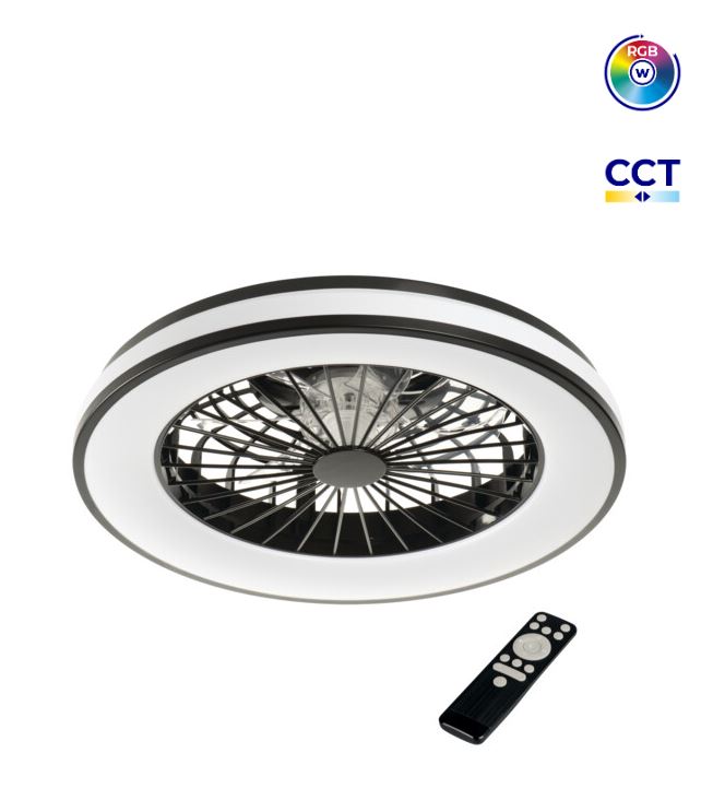 | Key Features: • Stylish all-in-one fan and lighting fixture • Adjustable CCT+RGB LED lighting: 3000K, 4200K, 6500K & RGB • Max 48W energy-saving DC motor for quiet operation • Remote controlled for lighting modes • Application: Ideal for homes, showrooms, offices, hospitality venues and interior upgrades Specifications: